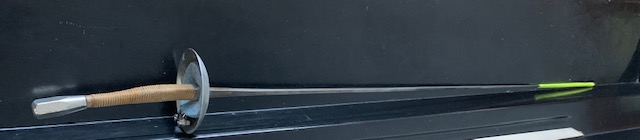 Muy buen estado, de colección, no se recomienda para practica de sable, ya que dañaría el grabado y diadema de bagueta muy bien conservada.